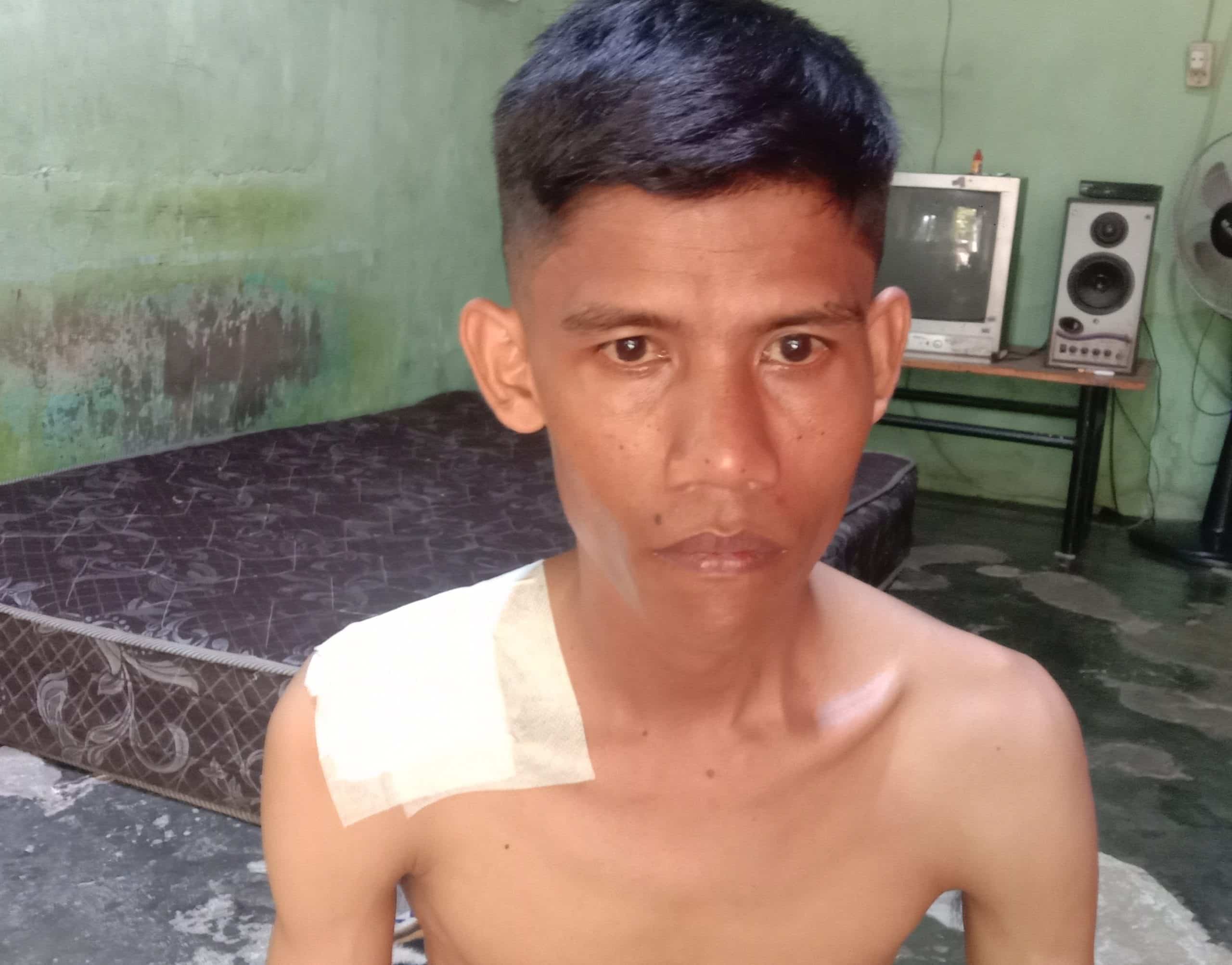 Akibat kejadian tersebut, ayah 3 anak ini menderita luka bacok senjata tajam pada bagian bahu sebelah kanan dan harus mendapat perawatan medis di RS Bina Kasih.