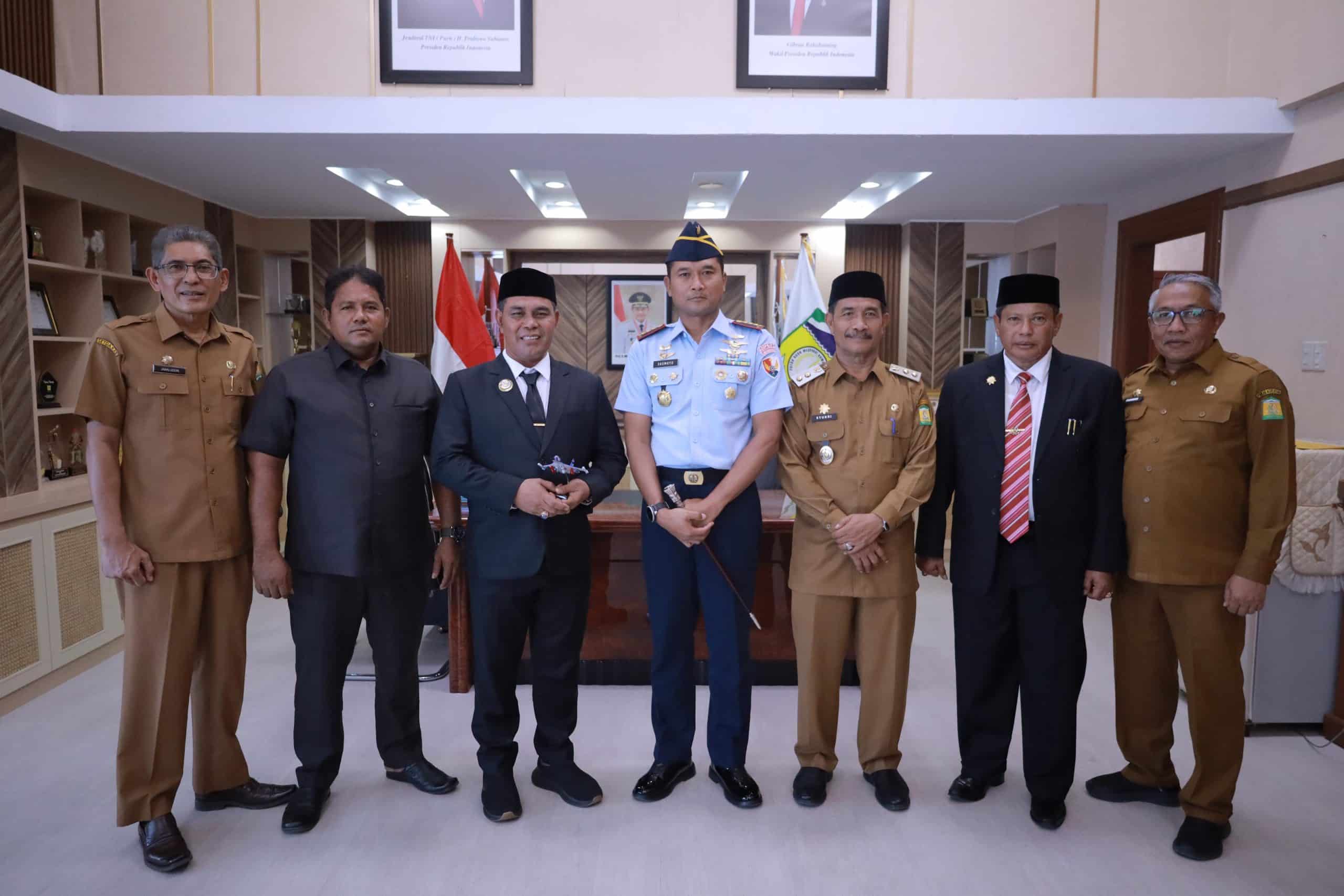 TKP Medan News.Com, Aceh Besar : Komandan Pangkalan TNI AU Sultan Iskandar Muda (Lanud SIM), Kolonel Pnb Hantarno Edi Sasmoyo, M.Han secara resmi berpamitan kepada jajaran Forum Komunikasi Pimpinan Daerah (Forkopimda) Aceh Besar dalam sebuah pertemuan yang berlangsung di ruang kerja Bupati Aceh Besar, Kota Jantho, Senin (14/7/2025).