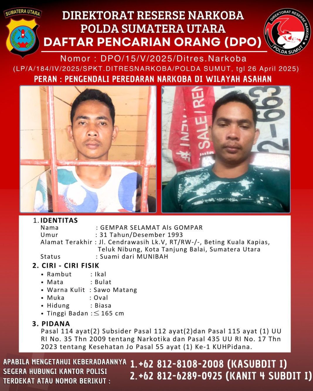 TKP Medan News.Com, Medan : Direktorat Reserse Narkoba (Ditresnarkoba) Polda Sumatera Utara menetapkan Gempar Selamat alias Gompar sebagai tersangka dalam kasus tindak pidana narkotika dan sediaan farmasi ilegal, setelah terungkap peranannya dalam peredaran barang haram dalam jumlah besar.