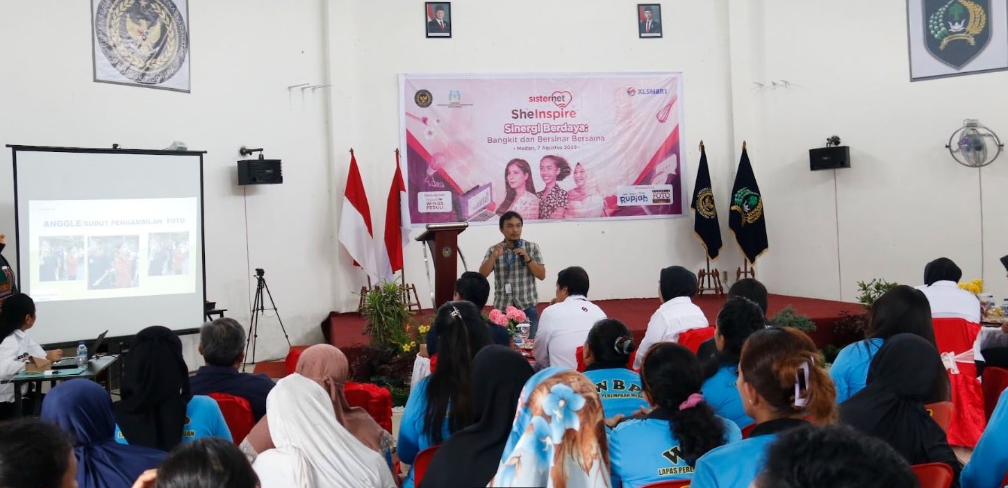 TKP-MEDAN, 7 AGUSTUS 2025. Karyawan XLSMART melaksanakan program Pemberdayaan Perempuan ‘’SheInspire Sinergi Berdaya: Bersinar Bangkit Bersama’’ dengan mengunjungi Lapas Perempuan Kelas IIA Medan. Kegiatan ini bertujuan untuk memberikan dukungan dan inspirasi kepada para warga binaan perempuan, serta membangun kesadaran akan pentingnya pemberdayaan perempuan dalam masyarakat. Melalui kolaborasi ini, karyawan XLSMART bekerjasama dengan Bank Indonesia dan Pewarta Foto Indonesia (PFI) Medan menyerahkan donasi peralatan mandi, edukasi Cinta Bangga Paham Rupiah, dan Pelatihan Fotografi. Kegiatan ini dilaksanakan di Lembaga Pemasyarakatan (Lapas) Perempuan IIA Tanjung Gusta, Sumatera Utara, Kamis (7/8).